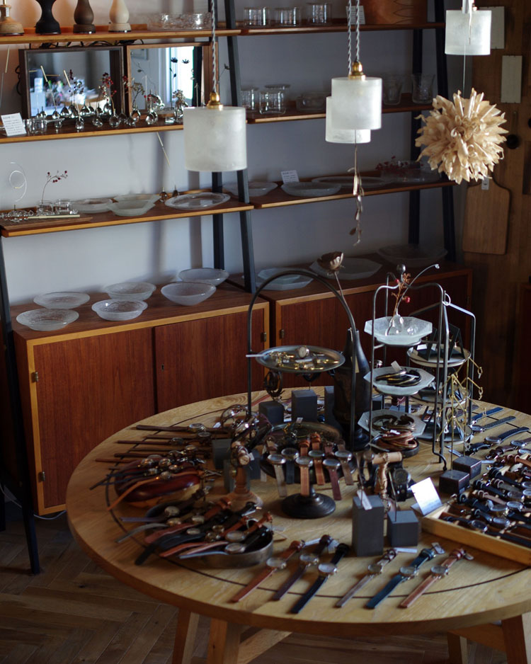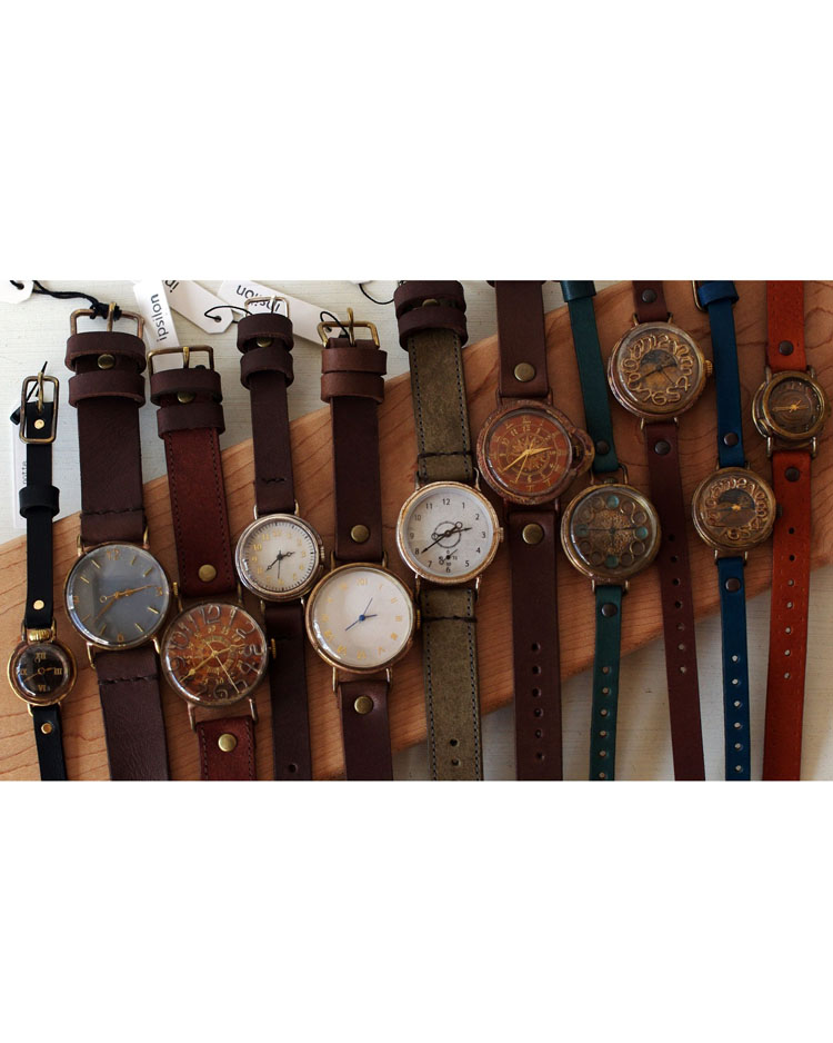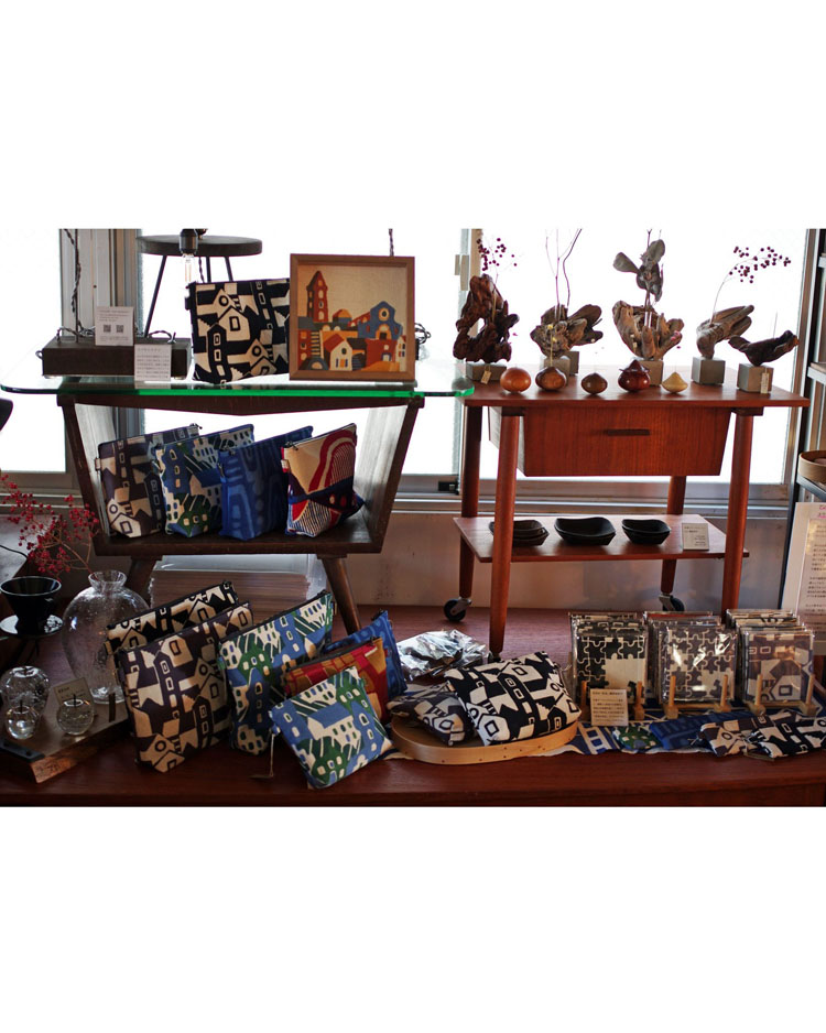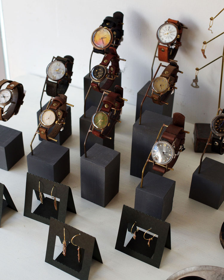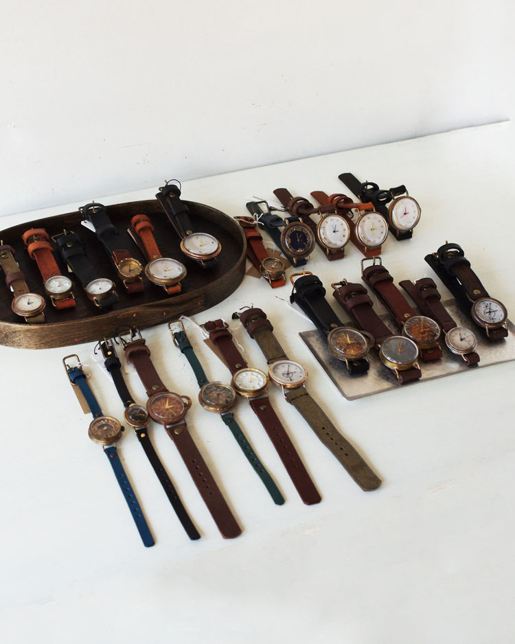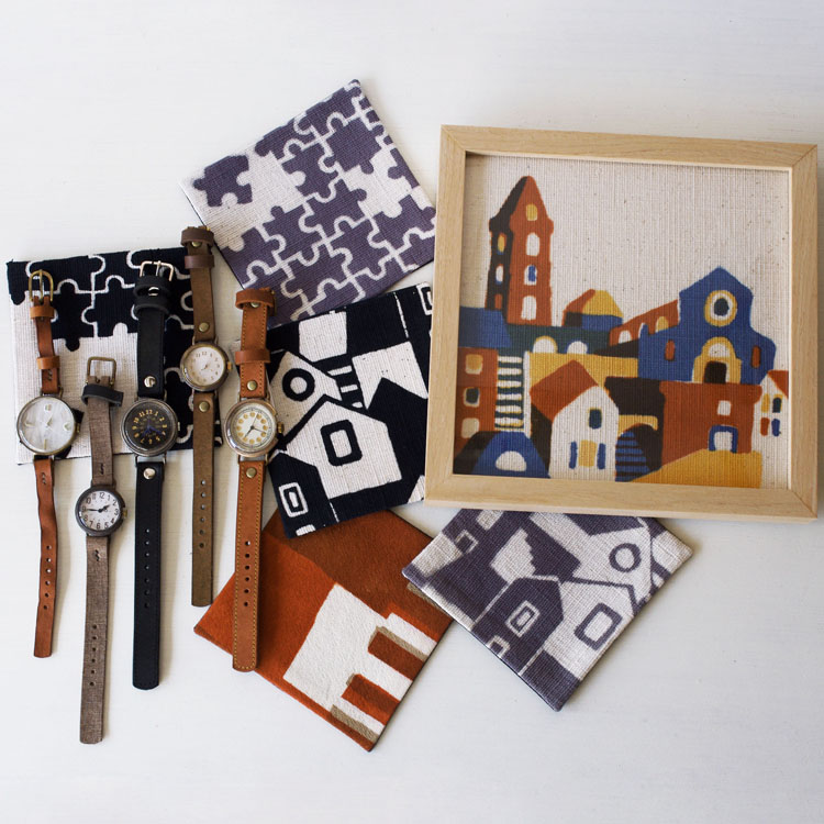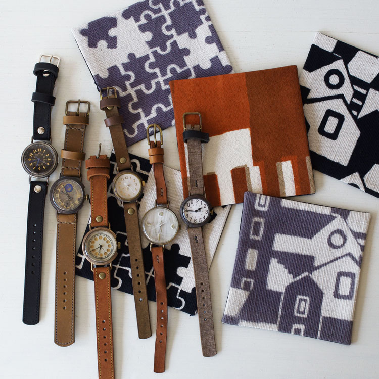 同じ師匠の元で学んでオリジナルに落とし込んだそれぞれのクラフト時計をはじめ、アクセサリーや、柚木沙弥郎氏の元で学んだ圓鍔(えんつば)さんによる型染めのアートやポーチを始めとしたファブリック作品など、幅広くお楽しみいただける2人展となってますので、どうぞお気軽にご来場くださいませ。