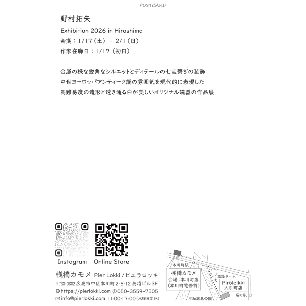 桟橋カモメ @pierlokki 本川町店では、1/17(土)より @nomura6115 野村拓矢さんの作品展を開催致します。埼玉県を拠点に活動する同氏の、当店では初開催となる作品展です。