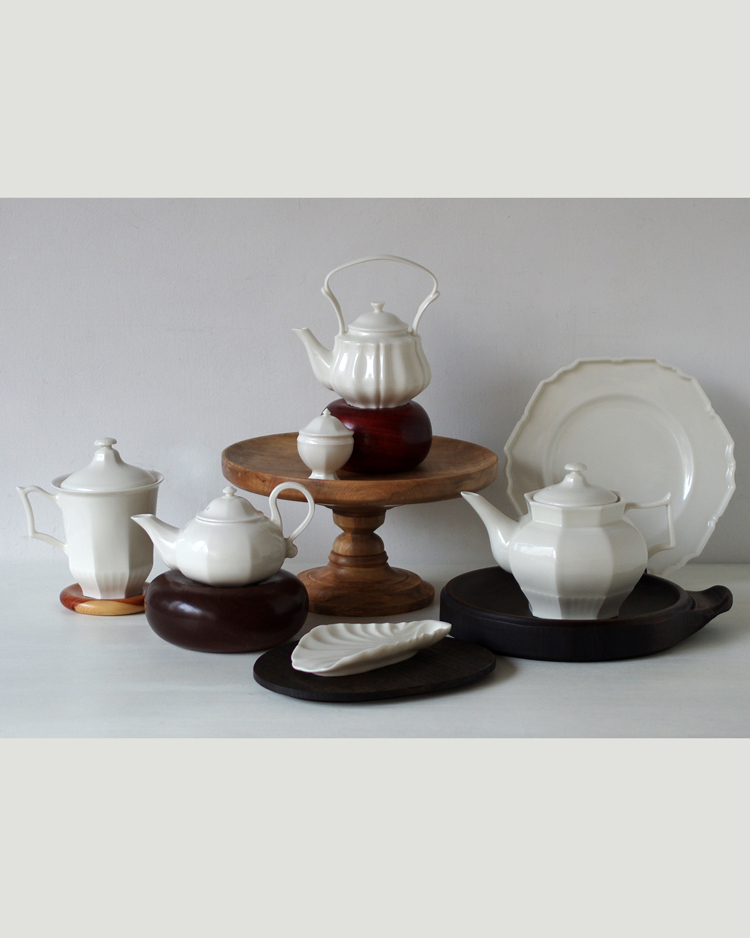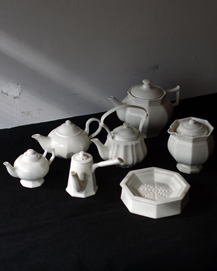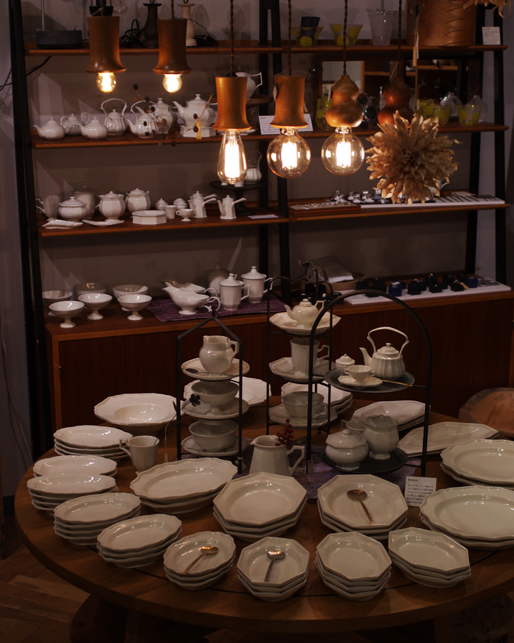 金属の様な鋭角なシルエットと、ディテールの七宝繋ぎの装飾。中世ヨーロッパアンティーク調の雰囲気を現代的に表現した、高難易度の造形と、透き通る「白」が美しいオリジナル磁器の作品展示・販売会。