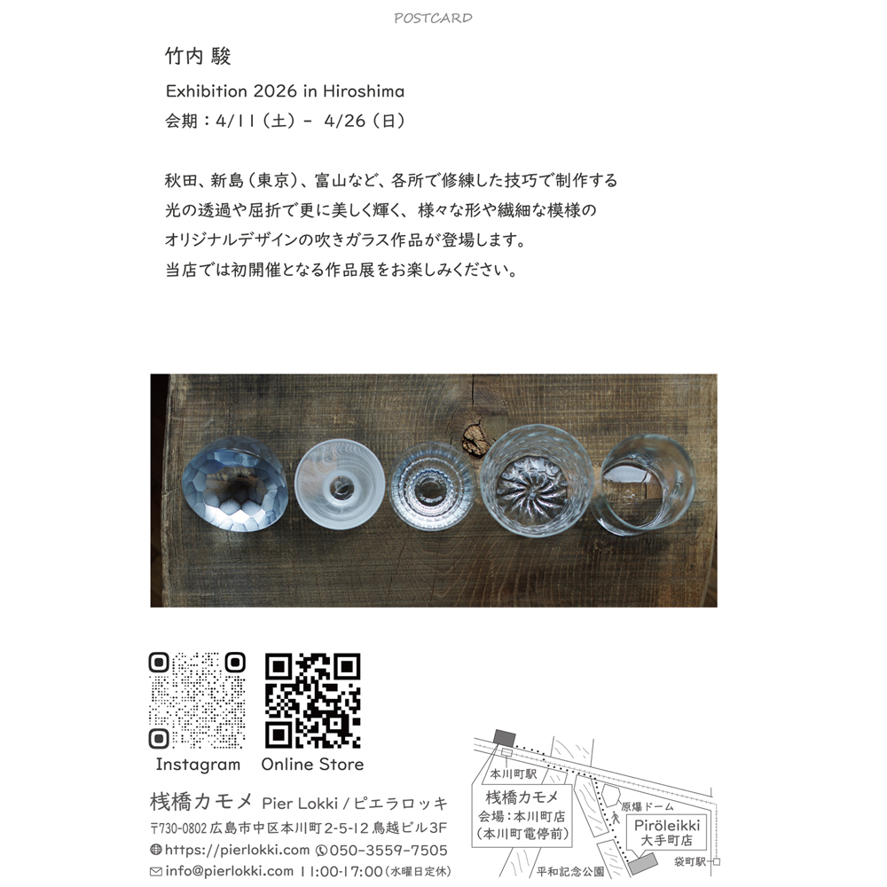 当店では初開催となる富山県に工房を構えるガラス作家「竹内 駿」さんの作品展示・販売会をお楽しみください。