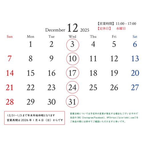 2025年12月営業日時